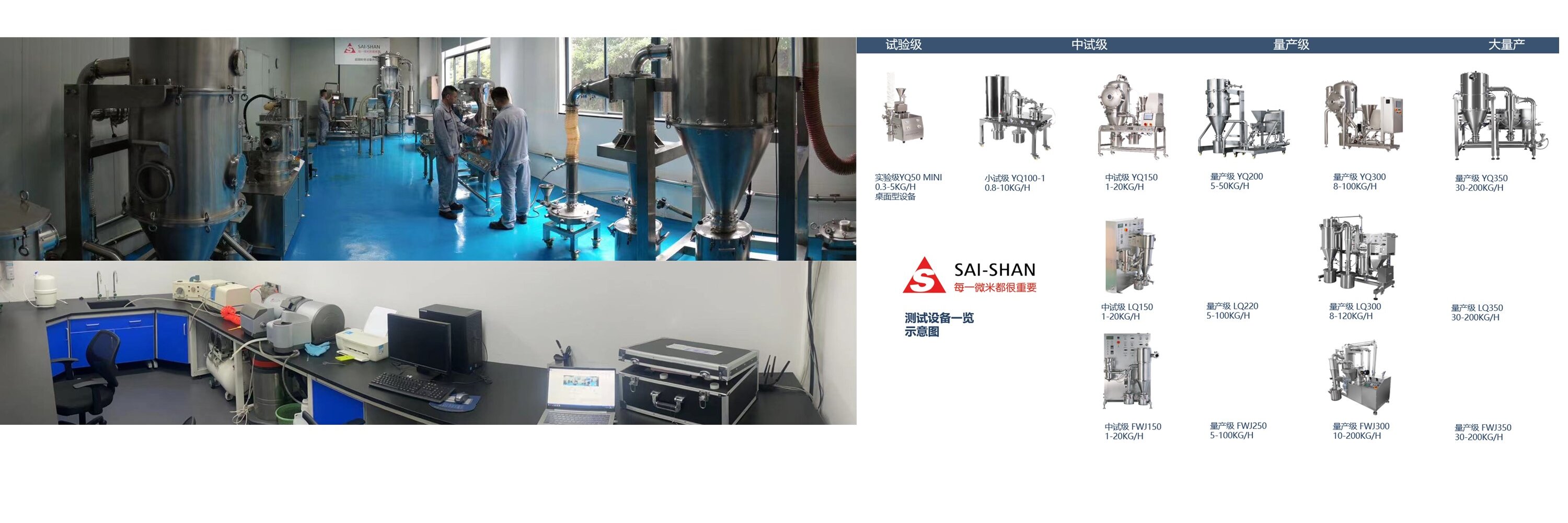 氣流粉碎機: YQ50MINI試驗級氣流粉碎機 YQ100 試驗級氣流粉碎機 (PTFE內(nèi)襯)(針對化學(xué)原料藥) YQ100試驗級氣流粉碎機 (工業(yè)陶瓷內(nèi)襯)(針對超硬物料) LQ150流化床氣流粉碎機 YQ150 小試級氣流粉碎機 (PEEK內(nèi)襯)(針對化學(xué)原料藥) (可使用氮氣氣源,針對防爆性能測試) YQ200中試級氣流粉碎機 (可使用氮氣氣源,針對防爆性能測試) YQ300 量產(chǎn)級氣流粉碎機 (PTFE內(nèi)襯)(針對化學(xué)原料藥) (可使用氮氣氣源,針對防爆性能測試) LQ300流化床氣流粉碎機 YQ350量產(chǎn)級氣流粉碎機 (工業(yè)陶瓷內(nèi)襯)(針對超硬物料)