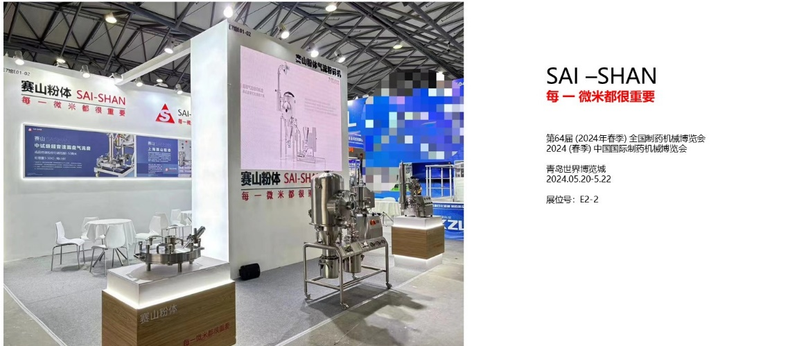 第64屆(2024年春季)全國制藥機械博覽會暨2024(春季)中國國際制藥機械博覽會于5月20-22號在美麗的青島舉辦。海內(nèi)外1500多家制藥裝備生產(chǎn)及服務(wù)企業(yè)與數(shù)萬醫(yī)藥行業(yè)同仁將再度相聚青島世界博覽城,共襄行業(yè)發(fā)展盛舉! 賽山粉體攜帶最新設(shè)備亮相,與廣大客戶共聚一堂。