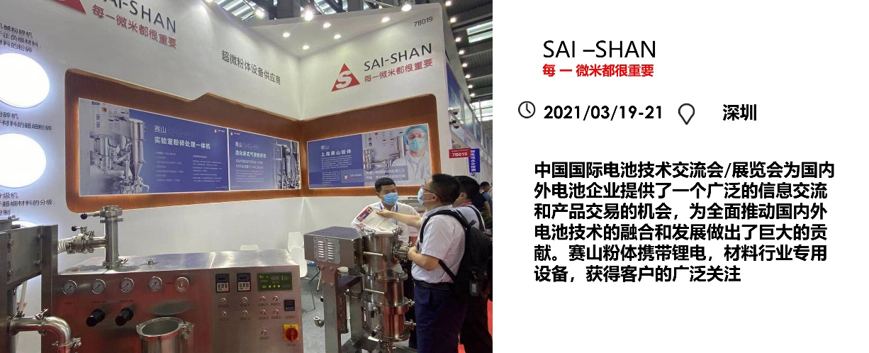 中國國際電池技術交流會/展覽會為國內(nèi)外電池企業(yè)提供了一個廣泛的信息交流和產(chǎn)品交易的機會,為全面推動國內(nèi)外電池技術的融合和發(fā)展做出了巨大的貢獻。賽山粉體攜帶鋰電,材料行業(yè)專用超微粉碎設備亮相展會,獲得客戶的廣泛關注
